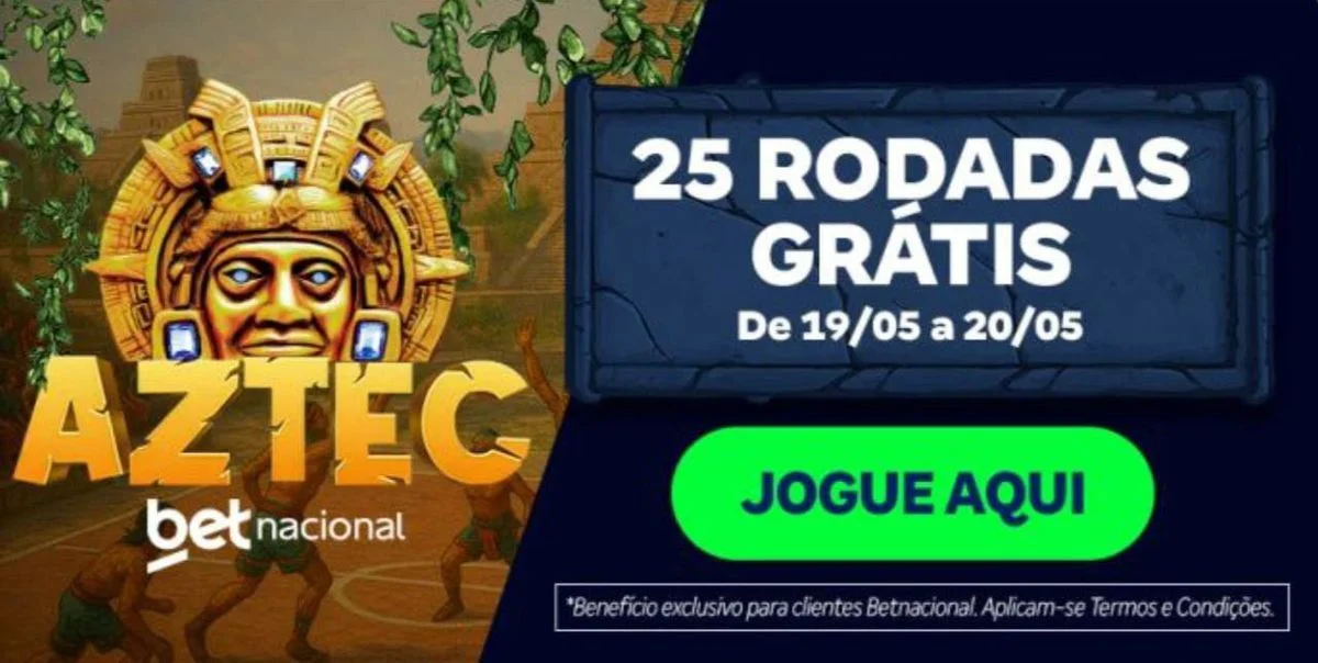 Durante 36 horas, das 12h de 19 de maio até 23h59 de 20 de maio de 2025, quem já concluiu o processo de Know Your Customer (KYC) na plataforma recebe automaticamente 25 giros gratuitos no título Aztec Betnacional.